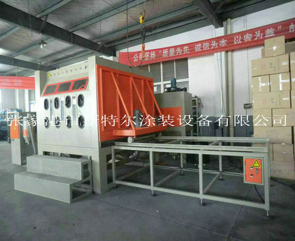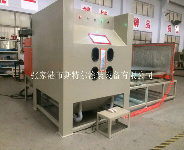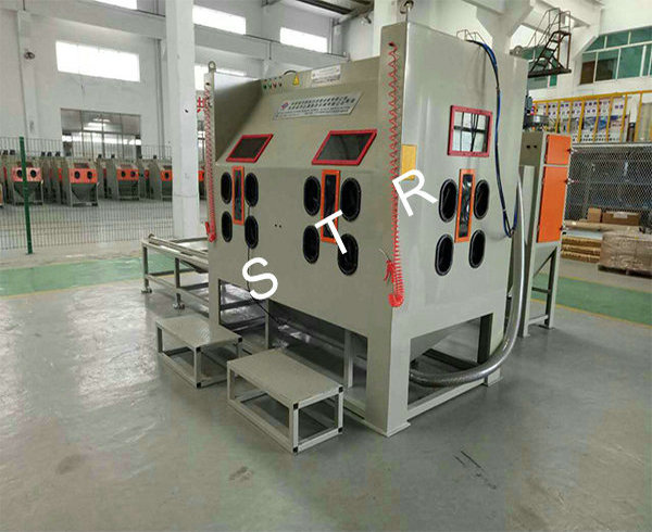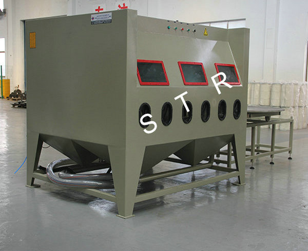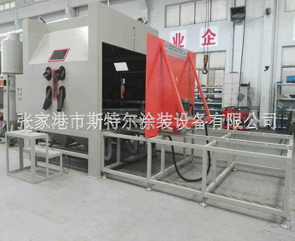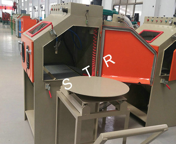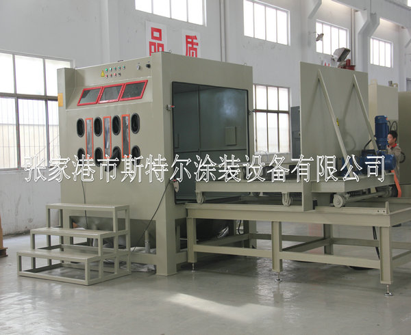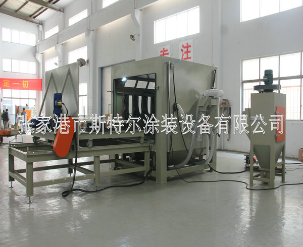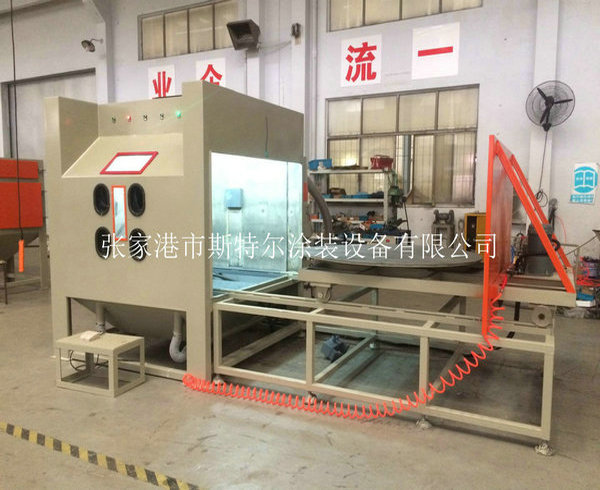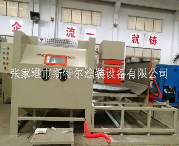 The machines apply to all kinds of heavy workpiece surface piating, such as all kinds of mould surface pear to processing (sandblasting), mold textured and fog face treatment. The operation is convenient, can use rail cart on unloading, saving, processing efficiency. The machines can be designed according to the needs, for manual or automatic turntable, diameter and on volume.