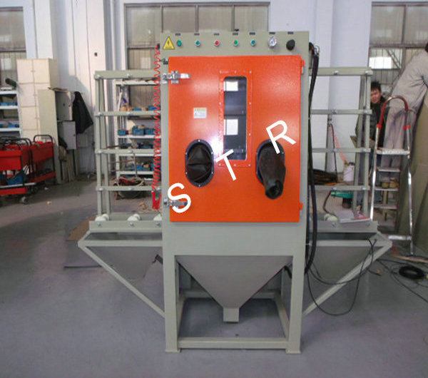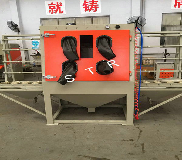 Flat glass, marble, metal plate vertical through the type dry sandblasting machine,